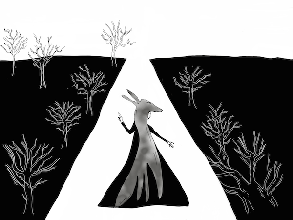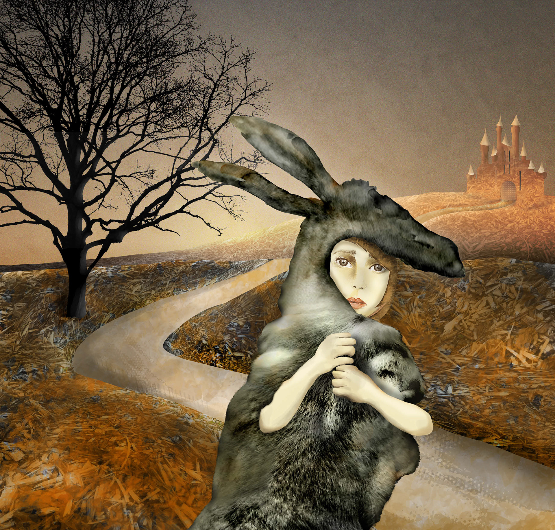 The illustration captures Donkey Skin as she flees the castle, worried that she might be captured, and equally worried about a very uncertain future.