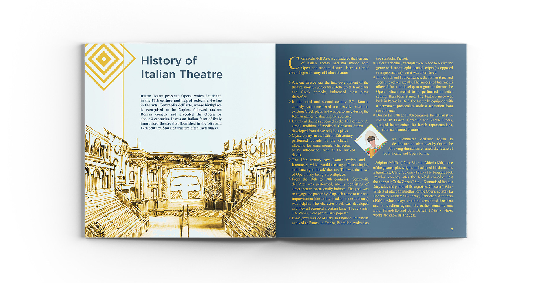 The theme was Teatro, the beauty of Italian Theatre, and I chose to focus on Commedia Dell'Arte, for its strong influence on later genres, especially scripted plays (Commedia Dell’arte being mostly improvised), and Opera.