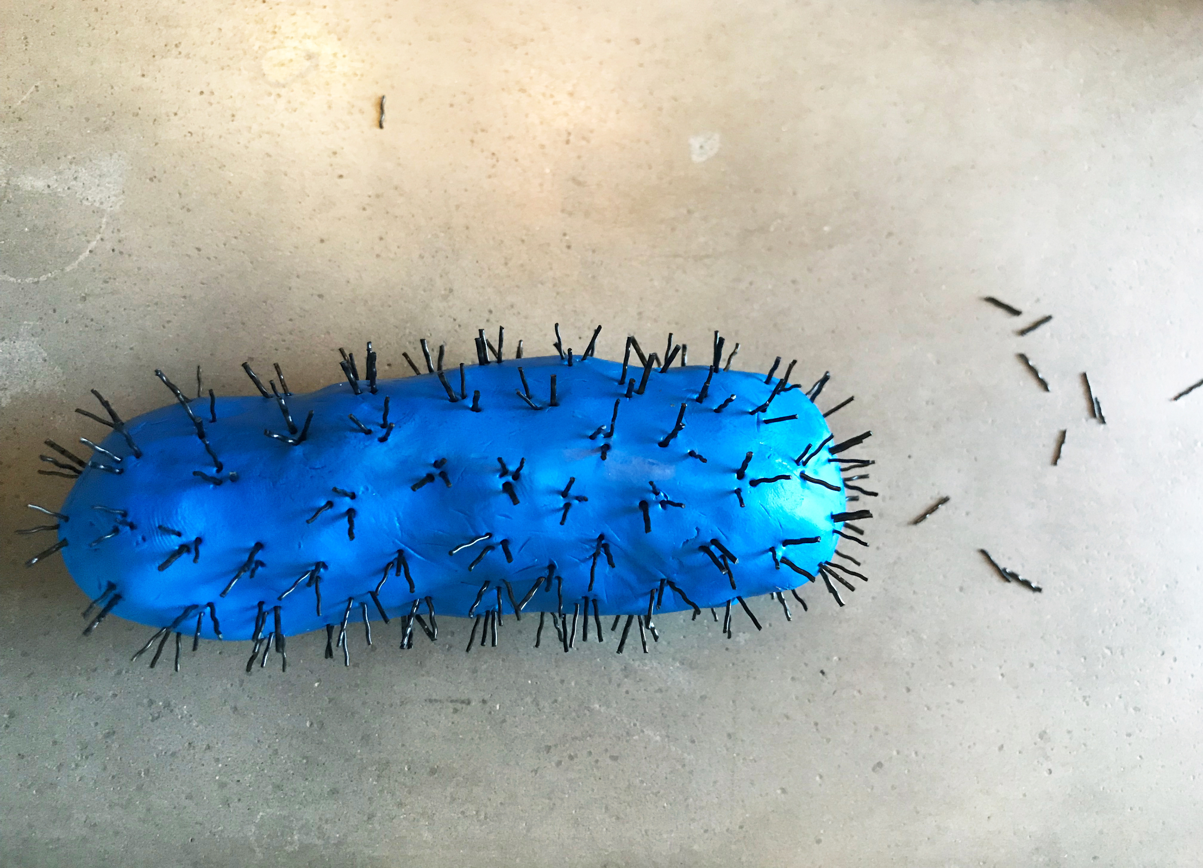 This virus didn't make the cut. But was fun to make, using an old brush's bristles.