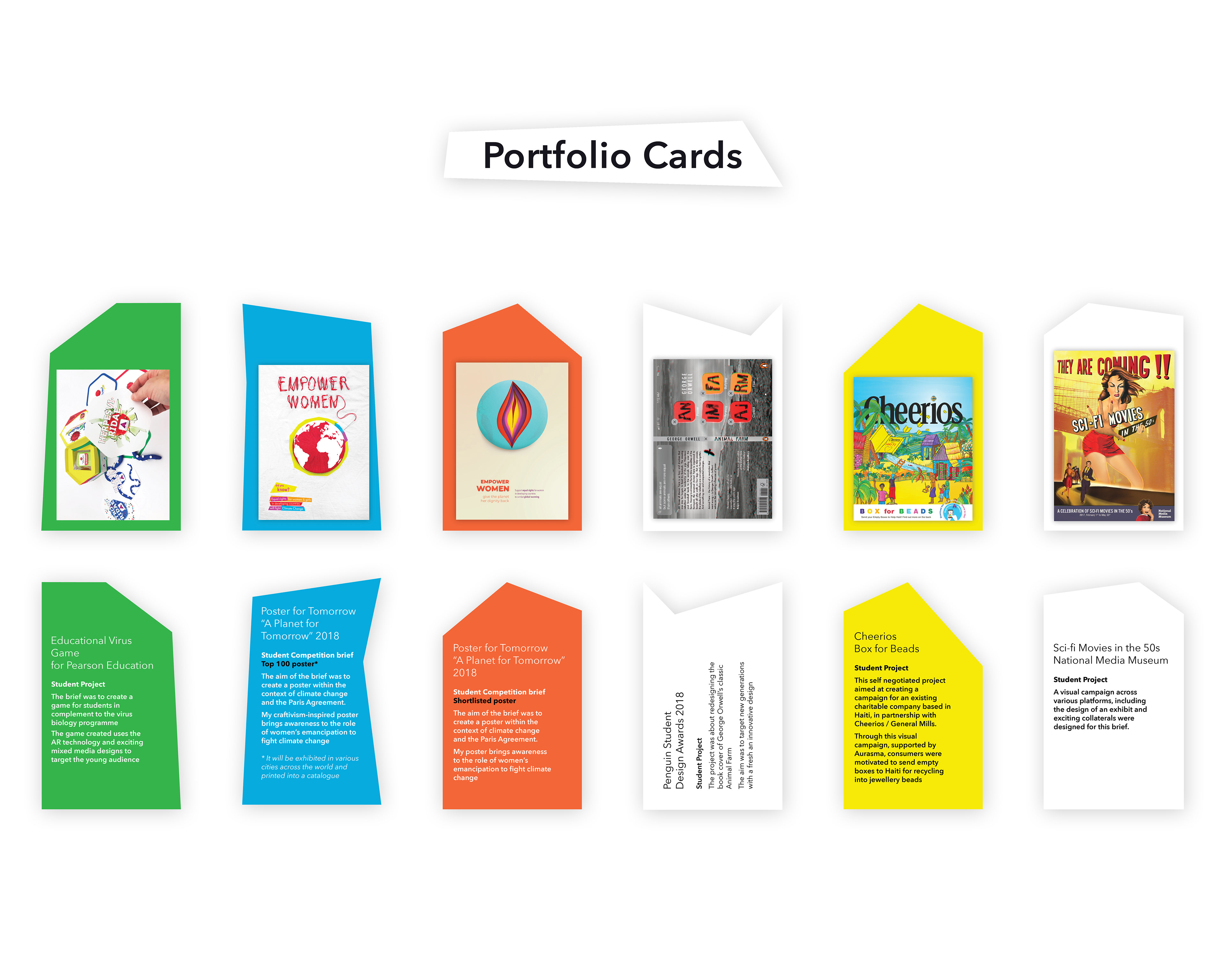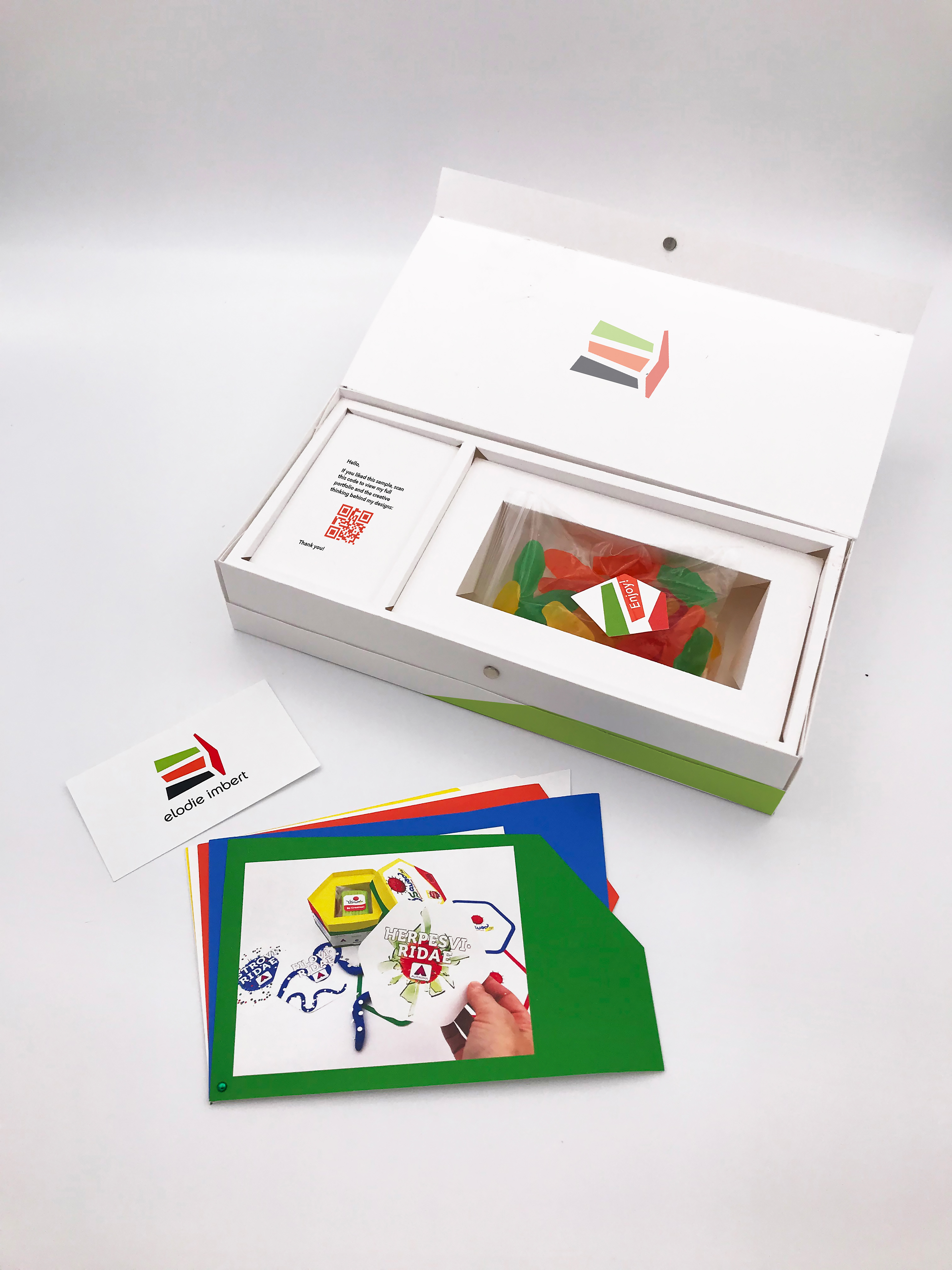 A self-promotional pack was produced as part of this identity. The portfolio presentation was inspired by the colour swatch format while expressing my love for unconventional shapes and colour combinations.