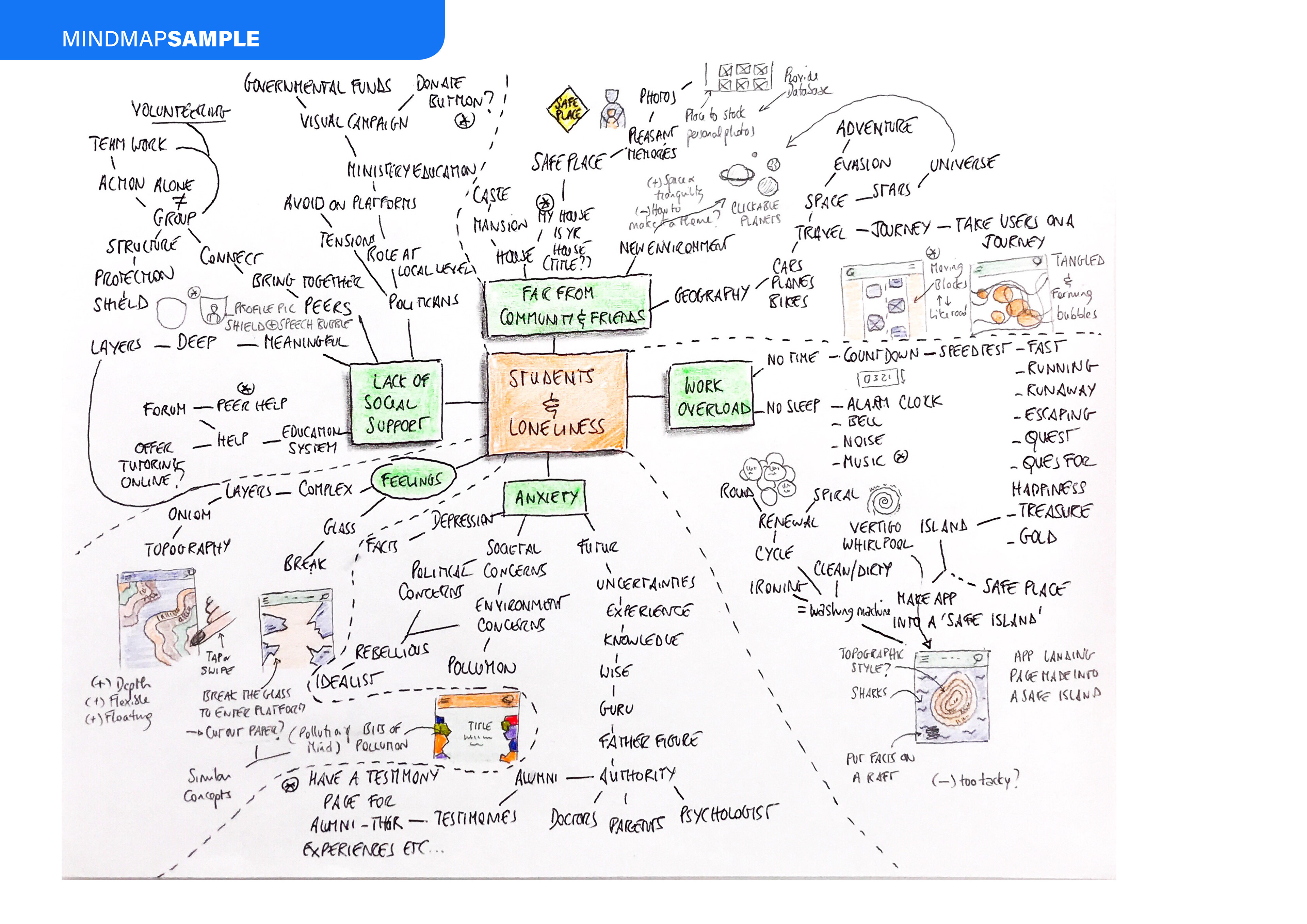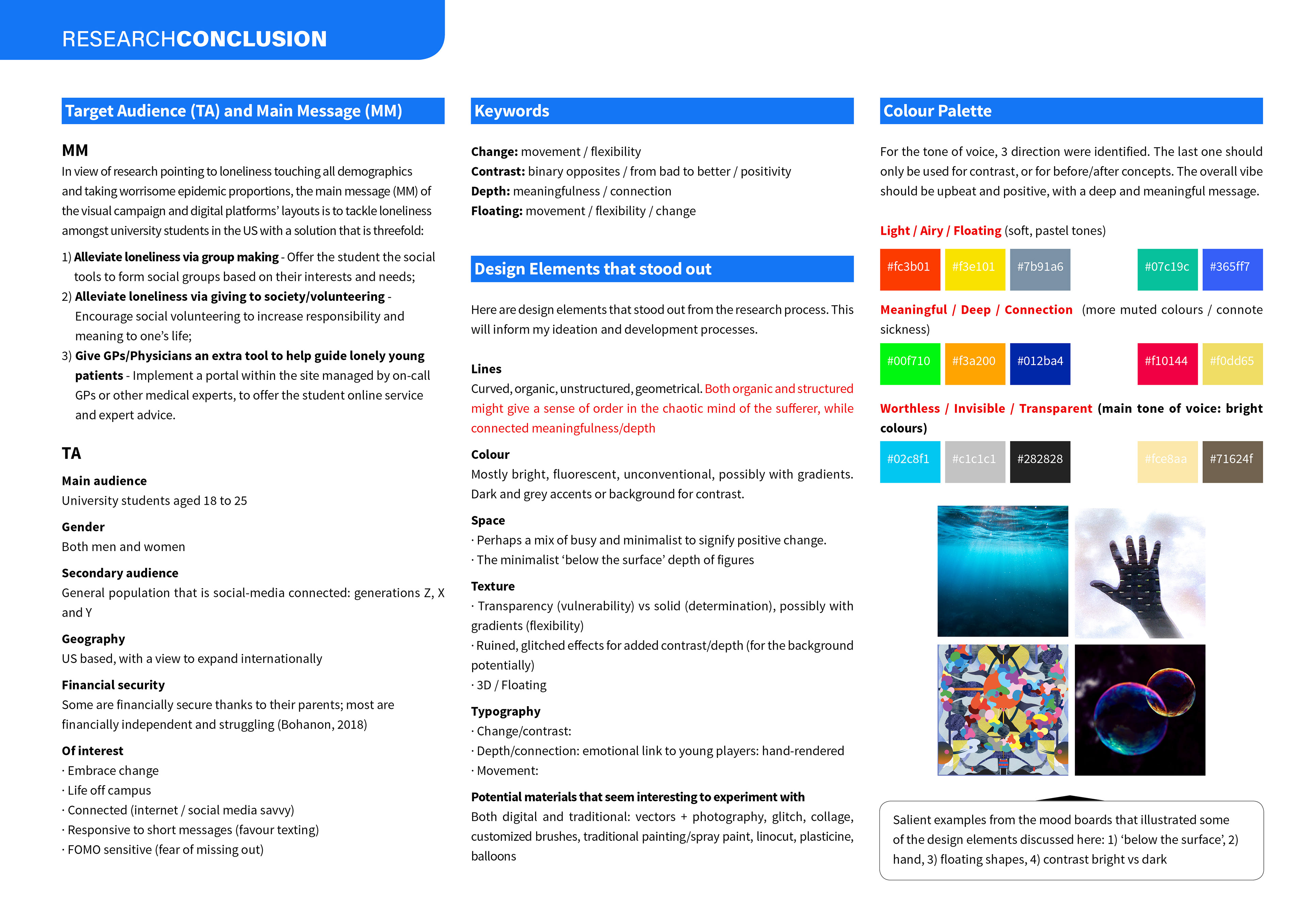 Visual methods, including mind-mapping and mood-boarding were employed to first establish, and then refine the tone of voice. They helped in creating a varied set of ideas and rationales. The strongest concepts were brought forward for the development of the deliverables.